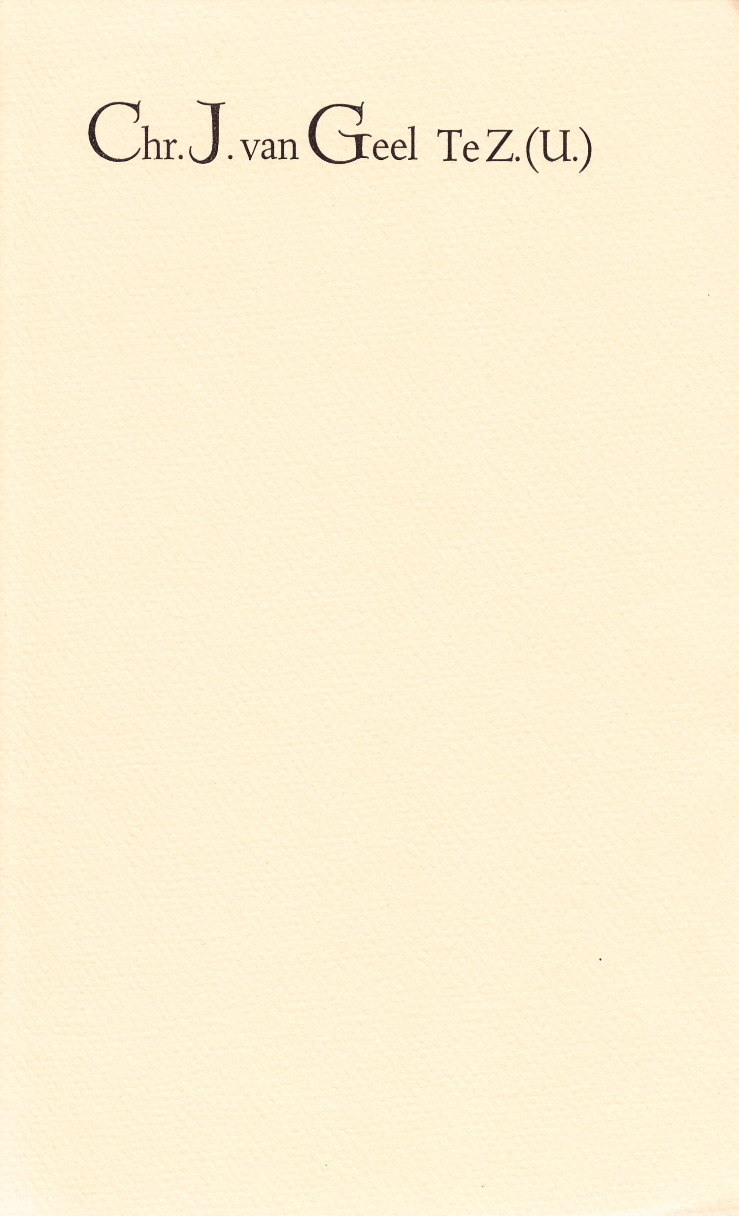 Chr.J. van Geel Te Z. (U.), ed. G. Middag, Stichting Chr.J. van Geel, Castricum 1992 [1994]