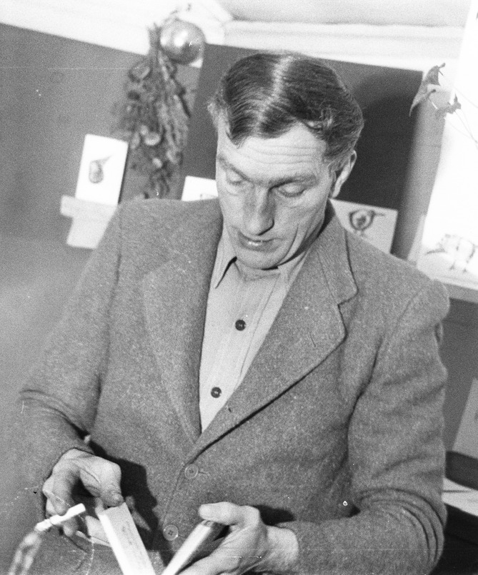 Van Geel zoekt vogeltekeningen uit voor zijn tentoonstelling in het Stedelijk Museum, Amsterdam (1961)