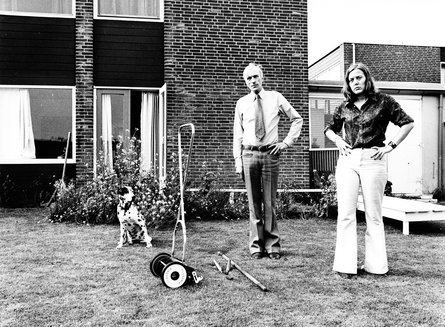 Met Elly de Waard en hun hond Geisha bij hun tijdelijke woning in Bergen (1972)