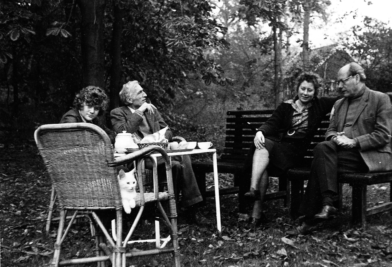 In de tuin van 't Vogelwater, met Homme, Lotte en Wytze Hellinga, september 1973 (1973)
