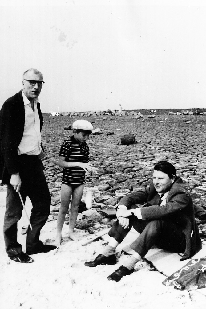 Met Jan Emmens en zijn zoon Jan Ameling aan het strand van Camperduin, zomer 1971